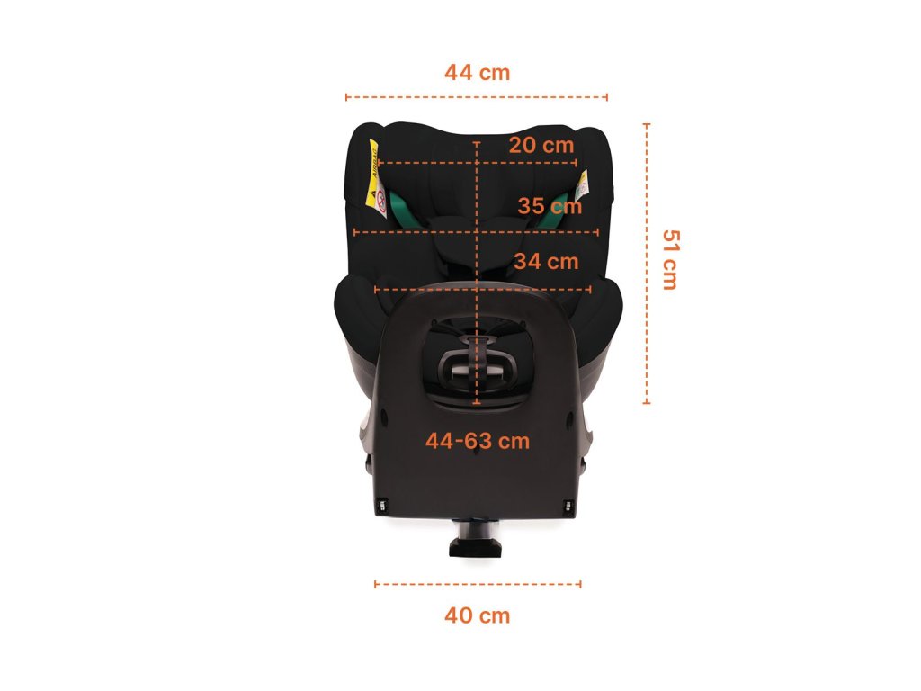Od narození až do 19,5 kg chrání děti 5bodový bezpečnostní pás s kvalitní sponou Immi. V této fázi se autosedačka poutá pomocí isofixu a opěrné nohy. Děti mohou jezdit proti směru jízdy až do 105 cm. Díky otáčení lze od 76 cm zvolit také jízdu po směru. Až dítě povyroste, jednoduše přejdete na poutání 3bodovým pásem vozidla. Opěrná noha se sklopí pod autosedačku. Vaše dítě je perfektně chráněné od narození až do 135 cm.