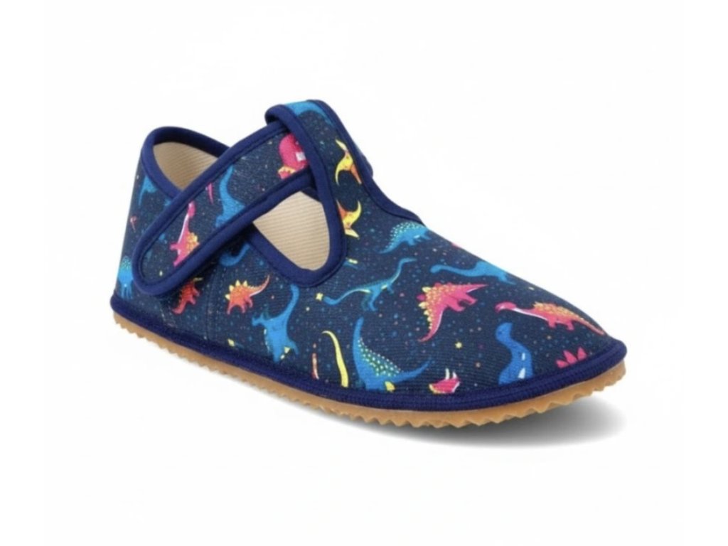 Hledáte kvalitní chlapecké barefoot přezůvky s hravým motivem, který si děti zamilují? Beda Colorful Dinos jsou lehké a prodyšné bačkory s tenkou, maximálně ohebnou podrážkou, nulovým dropem a anatomicky tvarovanou, prostornou špičkou. Díky zapínání na suchý zip se snadno nazouvají a dobře drží na noze. Střih se středně širokou patou a kotníkem poskytuje stabilitu při chůzi a pohodlí po celý den. Přezůvky jsou vhodné pro průměrná až širší chodidla s normálním až vyšším nártem a jsou ručně vyráběny v České republice. Ideální volba do školky, školy i na domácí nošení.