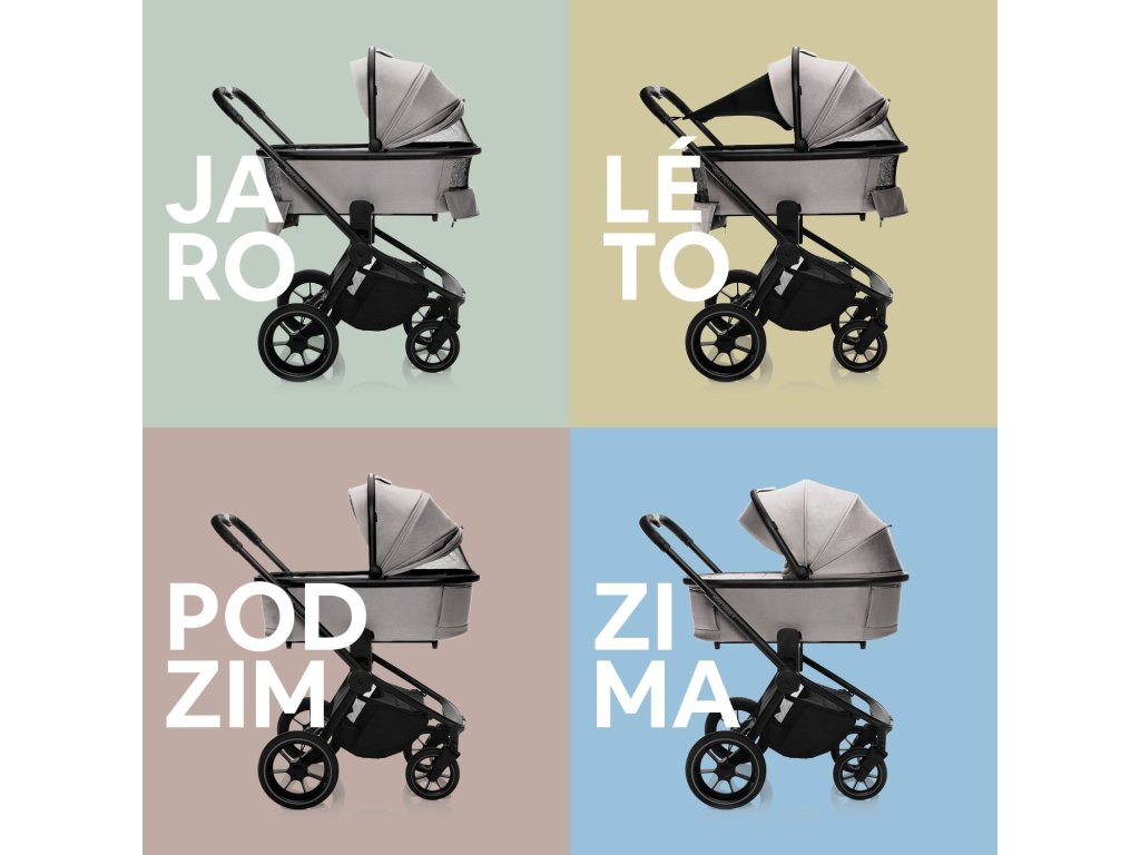 Větrací okénka na přední i zadní straně zajišťují příjemné klima uvnitř korby. Sluneční clona, která se díky zipu stane součástí stříšky, chrání děťátko před ostrým sluncem. Tyto vlastnosti oceníte zejména v horkých dnech.