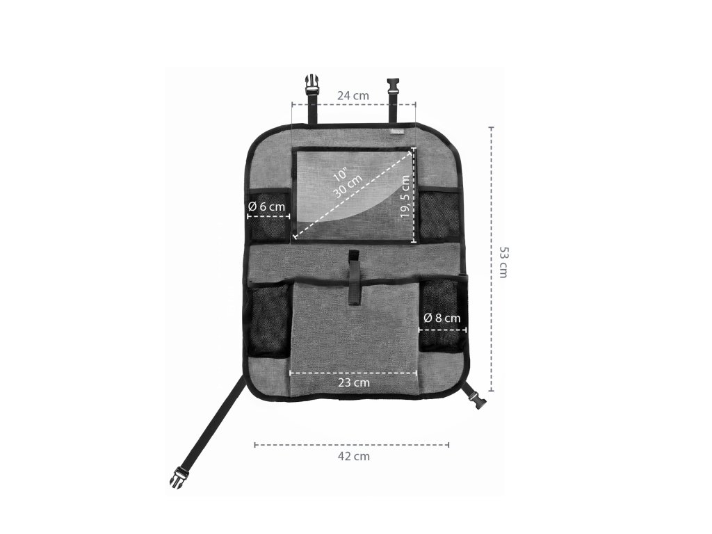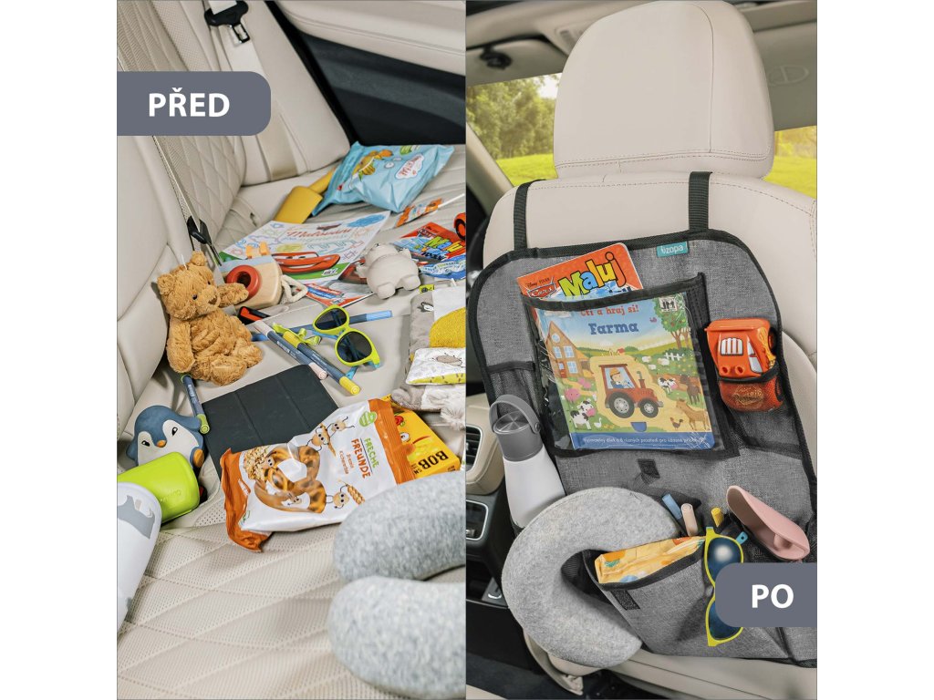 Praktický organizér na sedadlo s kapsou na tablet je perfektní společník na