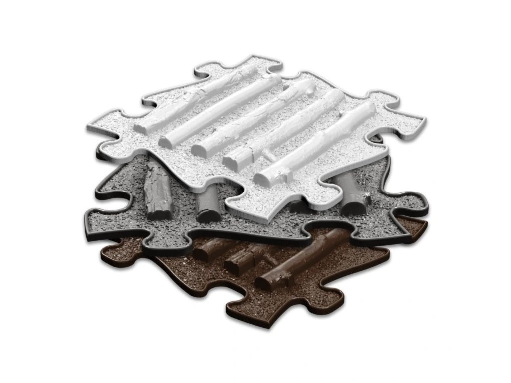 Jedním z našich cílů je zvyšování kvality podlah, a proto jsme inovovali spodní stranu. Výsledkem je nejen lepší vzhled ale i funkčnost. Zvýšili jsme pružnost podlahy a použili pevnější výztuhy, díky čemuž jsme dosáhli vyšší nosnosti. Navíc pro děti evokuje i podobnost včelí plástve. Tím pádem je naše podlaha propracovaná precizně ze všech možných stran a také vzhledově velmi atraktivní. Díky speciálním zámkům ve tvaru puzzle do sebe jednotlivé díly podlahy lehce zapadají a umožňují nespočet kombinací při skládání.